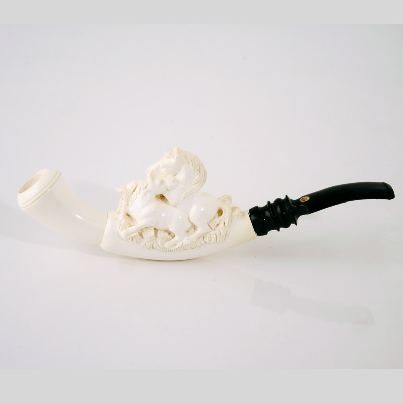 Sea foam Pipe 123 Horse design Carved