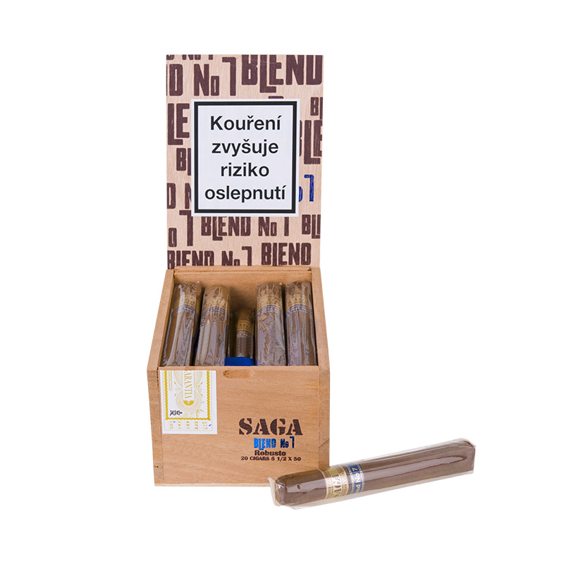 Saga Blend No. 7 the perfect combination of the timeless knowledge of traditional tobaccos and the newer balance that smokers today expect and love in a smoother tasting cigar. Filling: a blend of Central American and Dominican tobaccos.